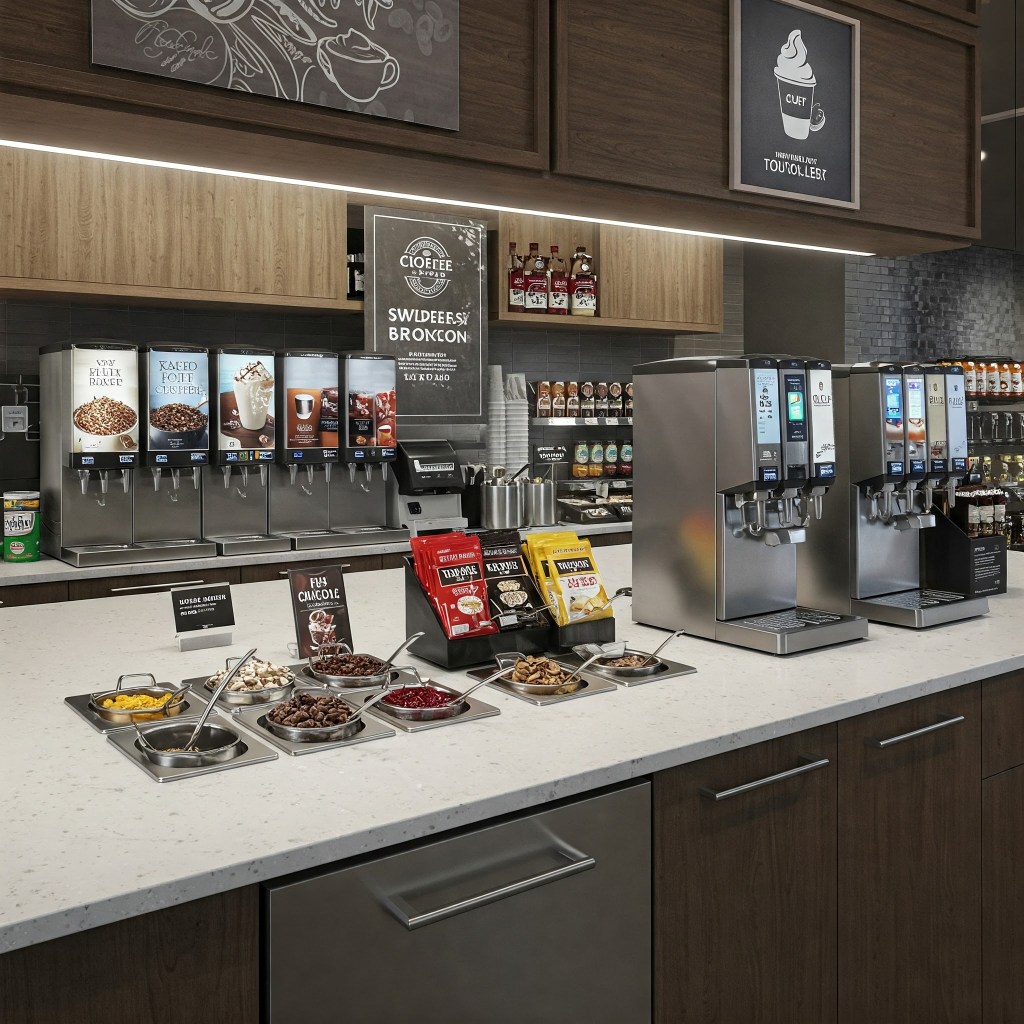 - Consider installing automated flavor stations or dispensers. These can offer precise portions of various syrups and creamers with the touch of a button. They reduce mess and ensure consistency. They add a modern, high-tech feel. Touchless options are also a huge plus for hygiene perception.