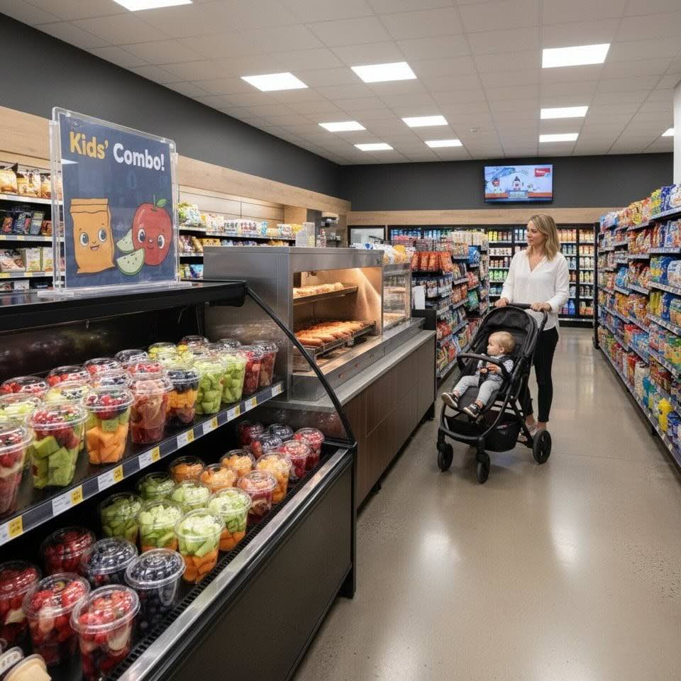 - Audit your product mix. Look for quick opportunities to introduce “healthy indulgence” items and kid-friendly bundles. You could cross-merchandise fresh fruit cups next to your hot dog roller grill. Another idea is to create a “kids’ combo” with a snack and a drink.