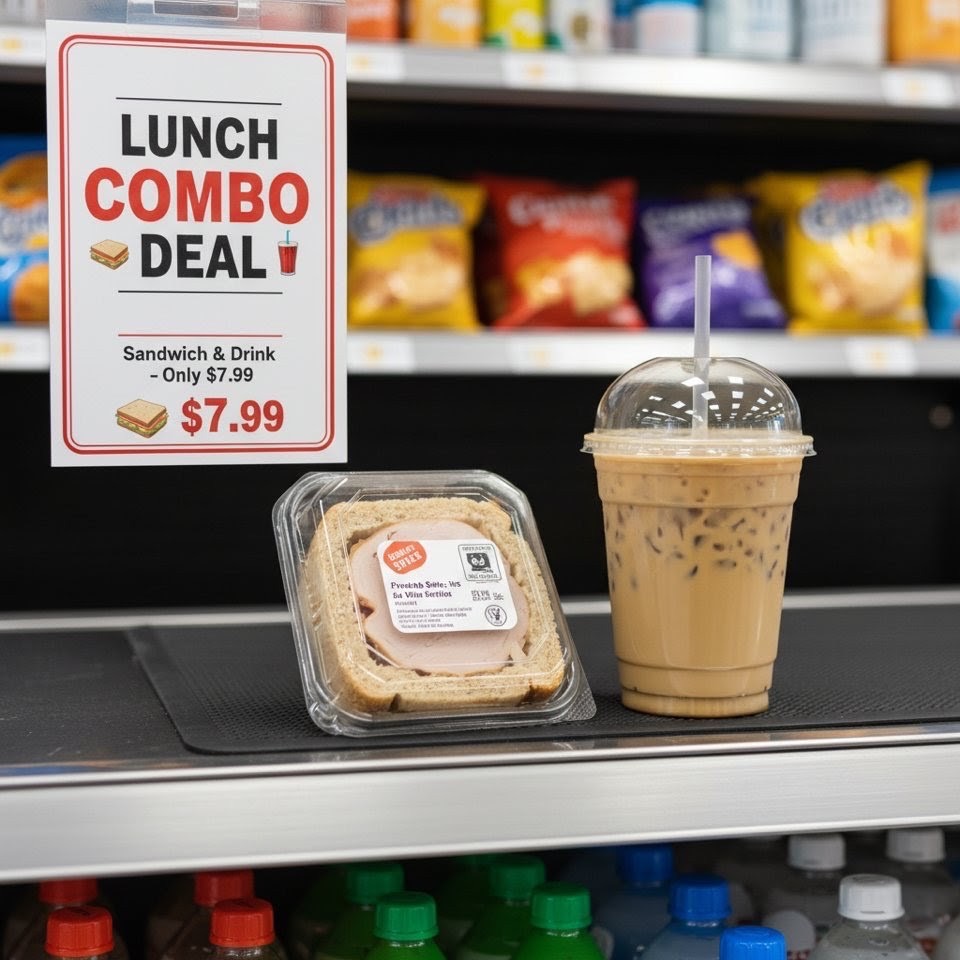 - Meal Combos and Bundle Deals: Use signage to promote meal solutions. For example, place a high-margin cold beverage next to a grab-and-go sandwich with a sign advertising a “Lunch Combo Deal”. Focused promotions tied to meal solutions are highly effective in boosting basket value.