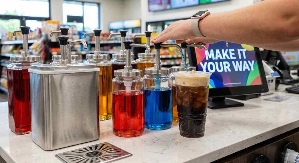 Successful operators are creating “customization stations.” Customers can add creamers, flavor shots, and cold foam. They can also mix in options like gummy rings or “bursties” to their drinks. This “Dirty Soda” trend (mixing sodas with creams and syrups) is a massive traffic driver for Gen Z and Millennials. They view these custom drinks as an “affordable luxury,” a $3.00 treat in a world where a Starbucks latte is $8.00. If you offer the ingredients for them to play “mixologist,” you become a destination, not just a pit stop.